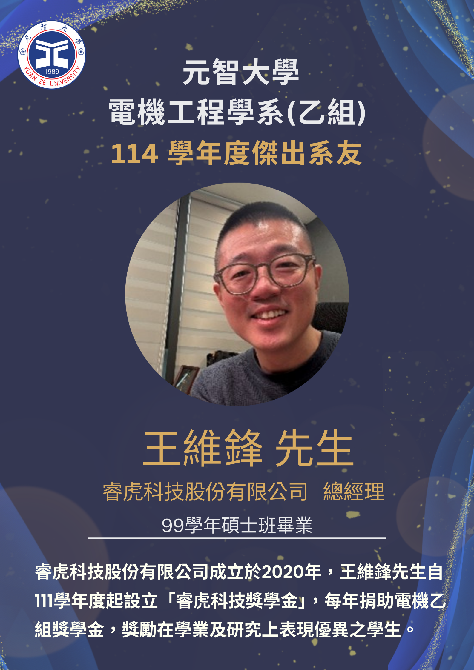 賀!睿虎科技股份有限公司王維鋒總經理獲114學年傑出系友