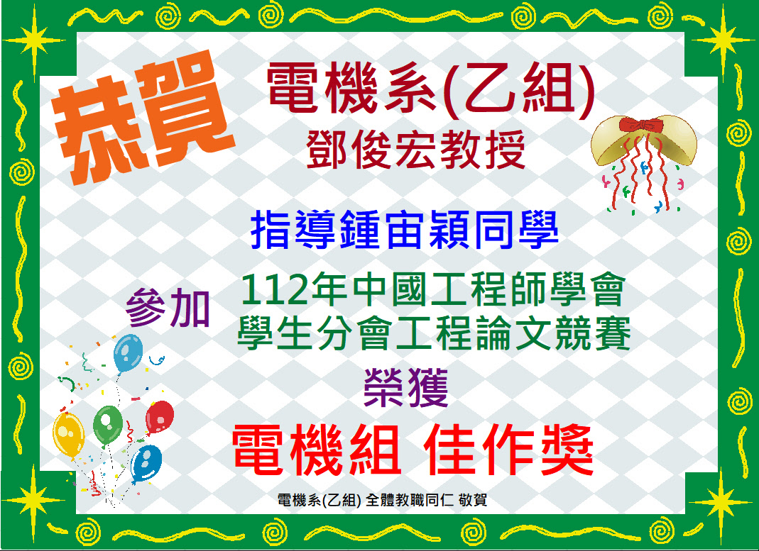 恭賀~鄧俊宏教授指導學生參加 112年中國工程師學會學生分會工程論文競賽 榮獲 佳作獎