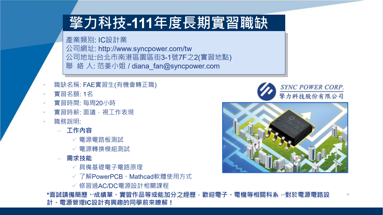 擎力科技是進駐南港軟體園區的廠商 目前在找明年度的實習生