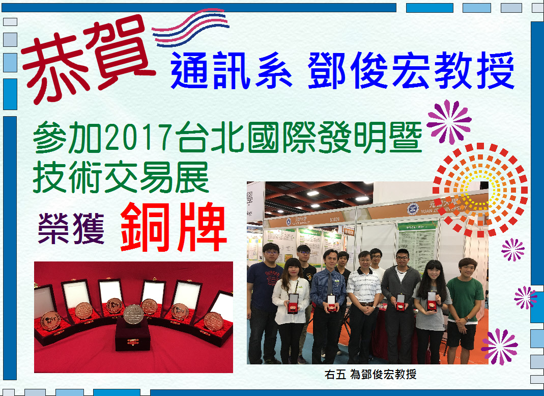 2017-10-02 恭賀 鄧俊宏教授 參加 2017台北國際發明暨技術交易展,榮獲銅牌