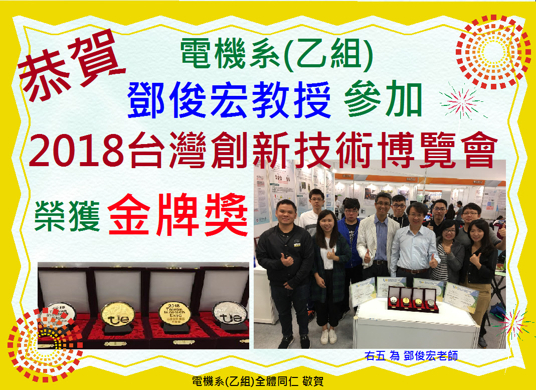2018-10-03 恭賀~鄧俊宏教授 參加「2018台灣創新技術博覽會」榮獲金牌