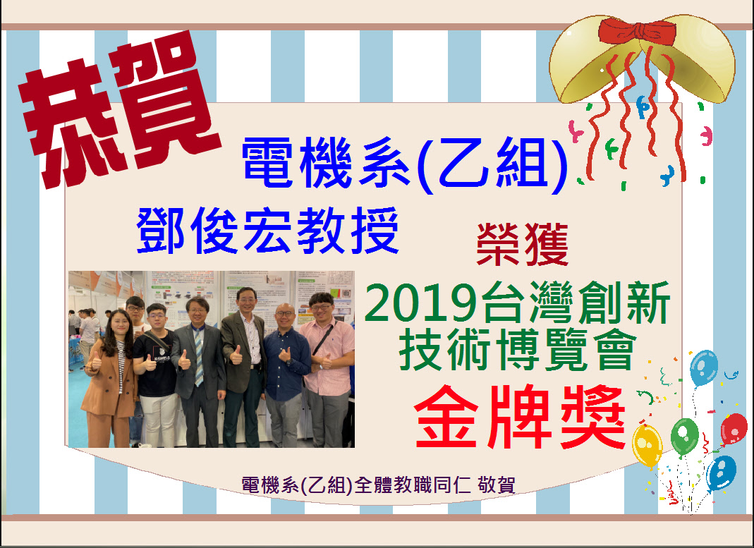 2019-10-04 恭賀~鄧俊宏教授 榮獲「2019年台灣創新技術博覽會」金牌獎