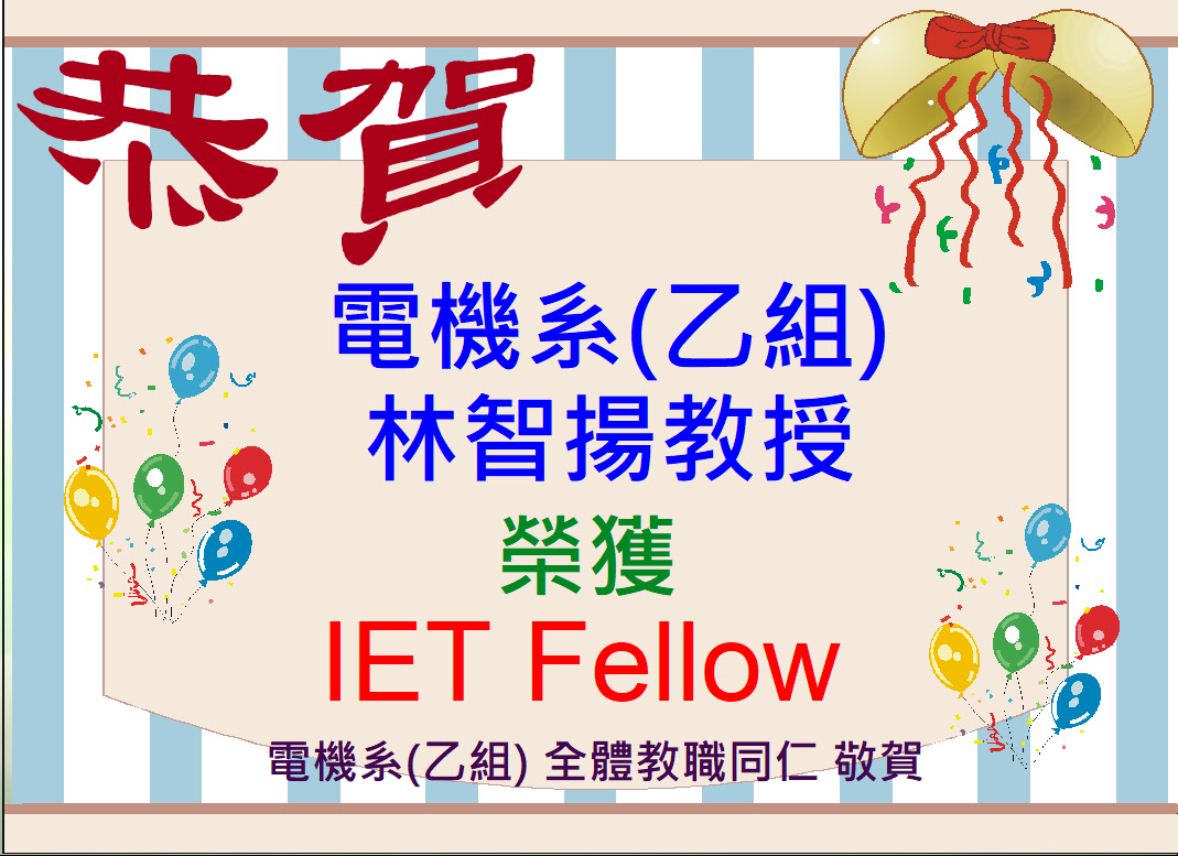 電機系(乙組)林智揚教授 傑出貢獻受到肯定,榮獲IET Fellow