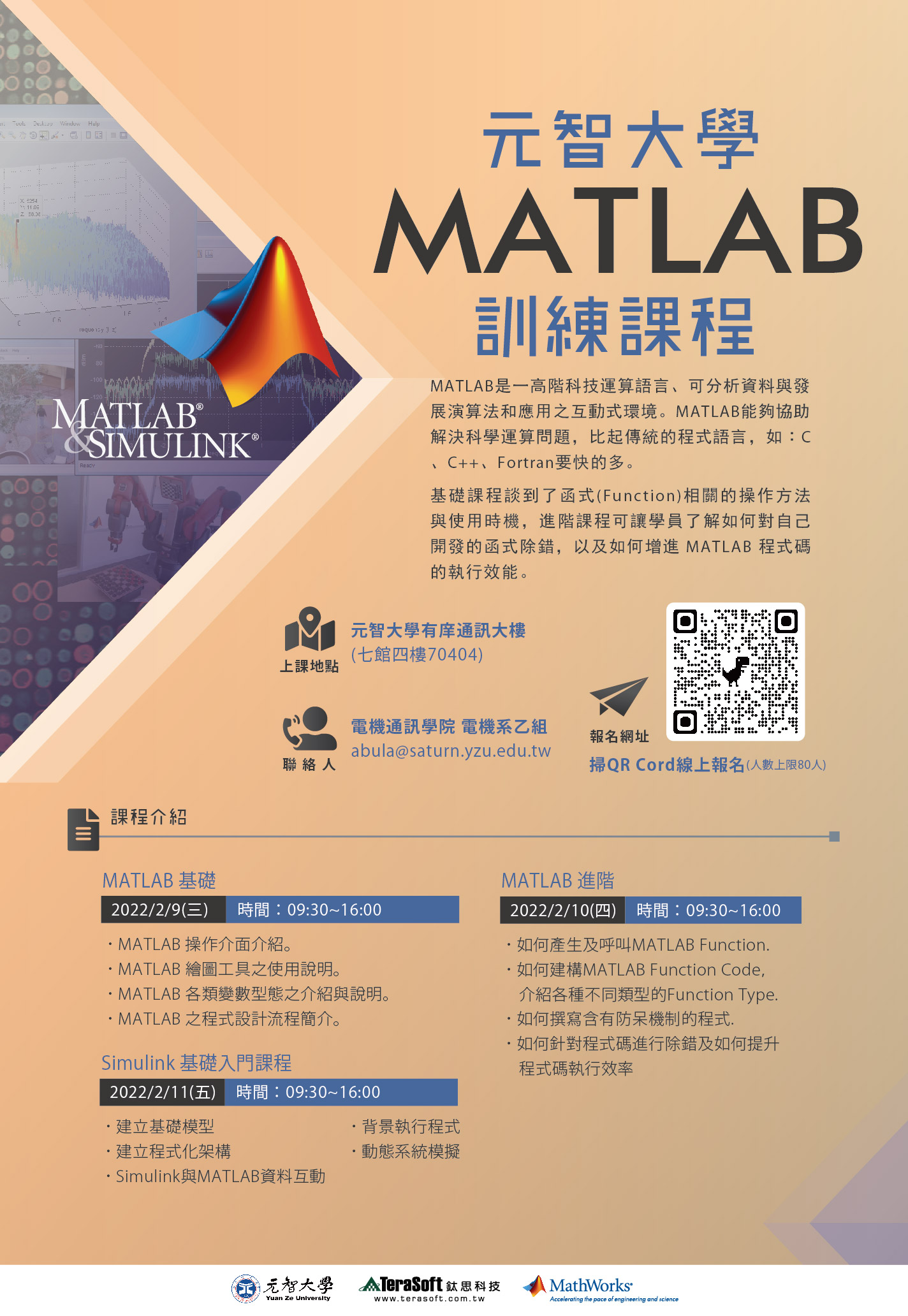 電機系乙組辦理MATLAB軟體訓練課程(寒訓)-2022年2月9日(三)~11日(五),共3日,歡迎報名參加!!