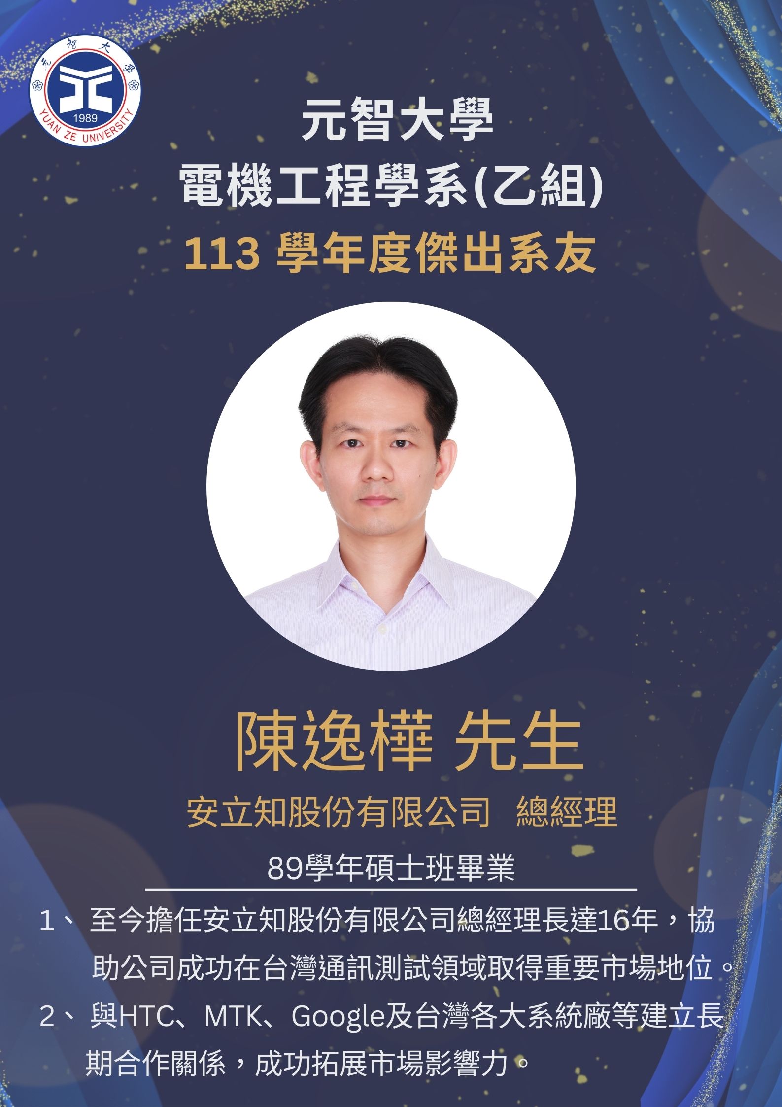 賀!安立知股份有限公司陳逸樺總經理獲113學年傑出系友